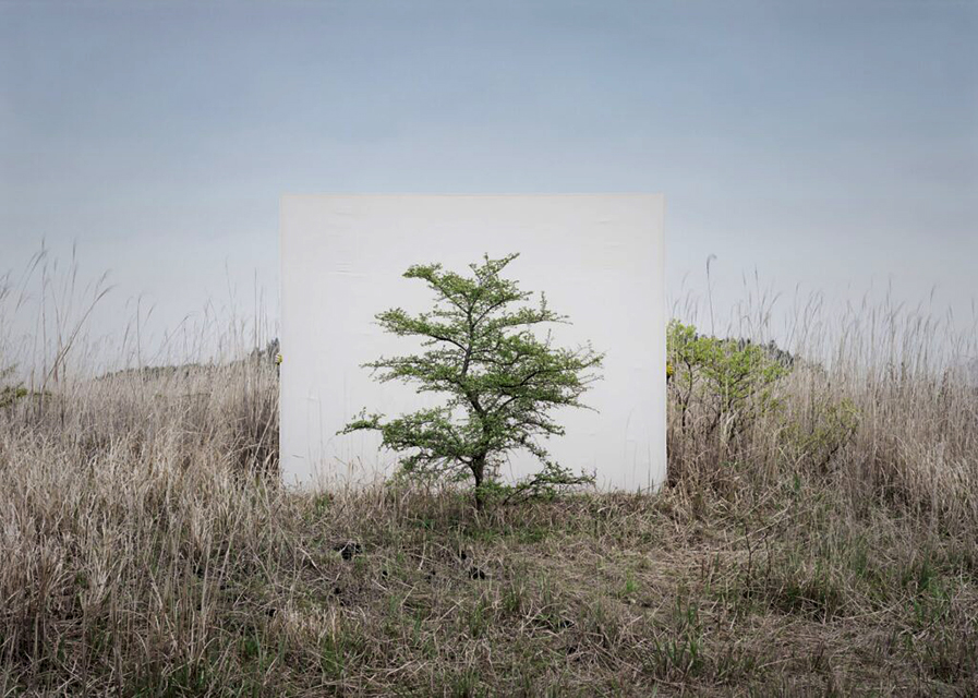 Desde 2006, Myoung Ho Lee recorre su natal Corea del Sur en busca de árboles para sus fotografías. El suyo es un trabajo paciente y minucioso: una vez que ha elegido el árbol, lo observa durante el paso de las estaciones para encontrar el momento oportuno de capturarlo. Para hacerlo, Lee coloca un lienzo blanco detrás que, de alguna manera, lo aísla y lo enmarca –un homenaje al árbol, en su calidad individual. Una vez hecha la fotografía, el artista borra todo rastro del soporte del lienzo para hacer parecer que éste está flotando, como si se tratara de acto de magia. El proceso de aislar a un árbol en particular resulta en las fotografías tituladas, todas ellas, Tree (Árbol), haciendo un homenaje, también, a su deslumbrante anonimato.
