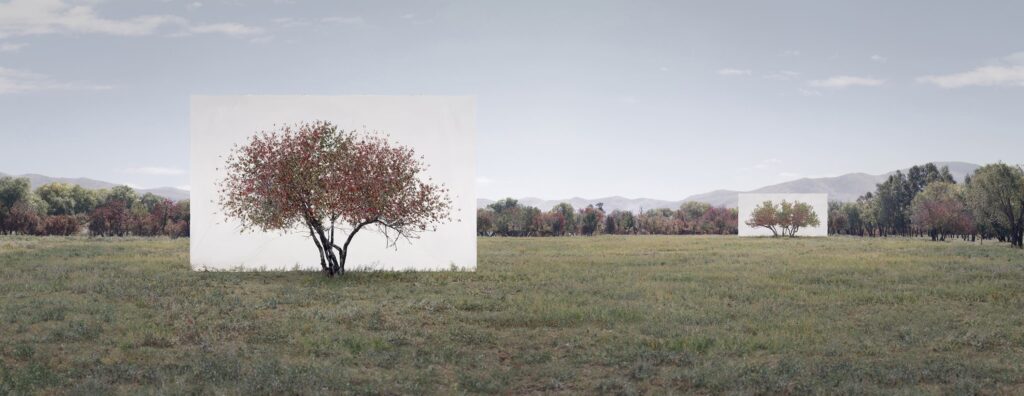 Al separar el árbol de su contexto, del paisaje que habita, ocurre una especie de ilusión óptica que juega con nuestra percepción. Por un lado, la imagen del árbol solitario pareciera estar insertada en la fotografía, en una especie de collage botánico. Pero este juego resulta también en un ser que pareciera bidimensional, una impresión del árbol original, que cuestiona nuestra percepción y permite al árbol existir de otra manera: engrandecido, señalado, elegido.